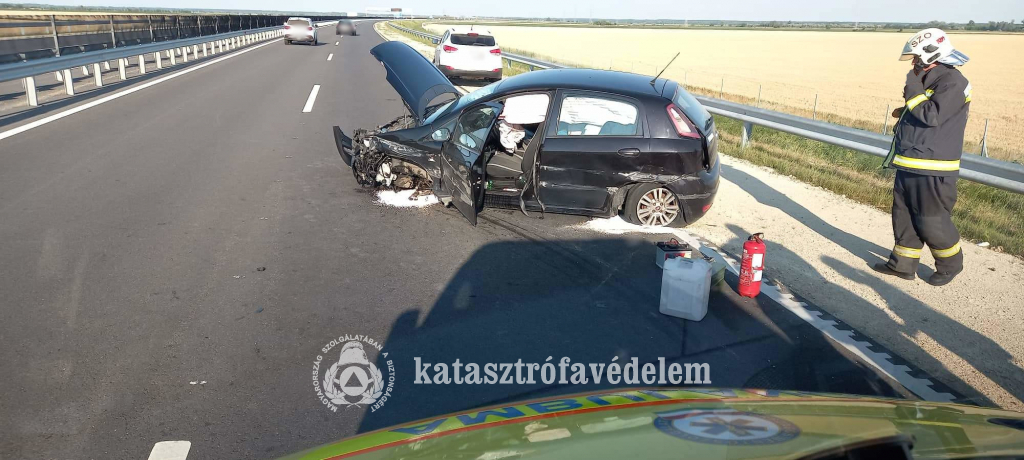 Szalagkorlátnak ütközött, majd megpördülve a külső forgalmi sávban állt meg egy személygépkocsi szombat délután az M4-es autóút Szolnokot elkerülő szakaszán. A járműben ketten utaztak és önerőből ki tudtak szállni. A baleset következtében a gépkocsi egyik kereke kiszakadt. A szolnoki hivatásos tűzoltók áramtalanították az autót és felitatták a belőle kifolyt hűtővizet és fékolajat. A helyszínre mentők is érkeztek.