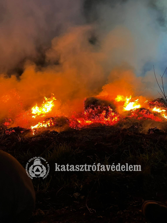 Kigyulladt egy nyolcvan szalmabálából álló kazal csütörtök délután Csataszög külterületén.