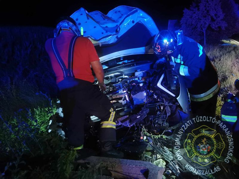 Egy út melletti beton villanyoszlopnak ütközött nemsokkal éjfél után egy terepjáró gépkocsi Kenderesen a 4. sz. főúton.
