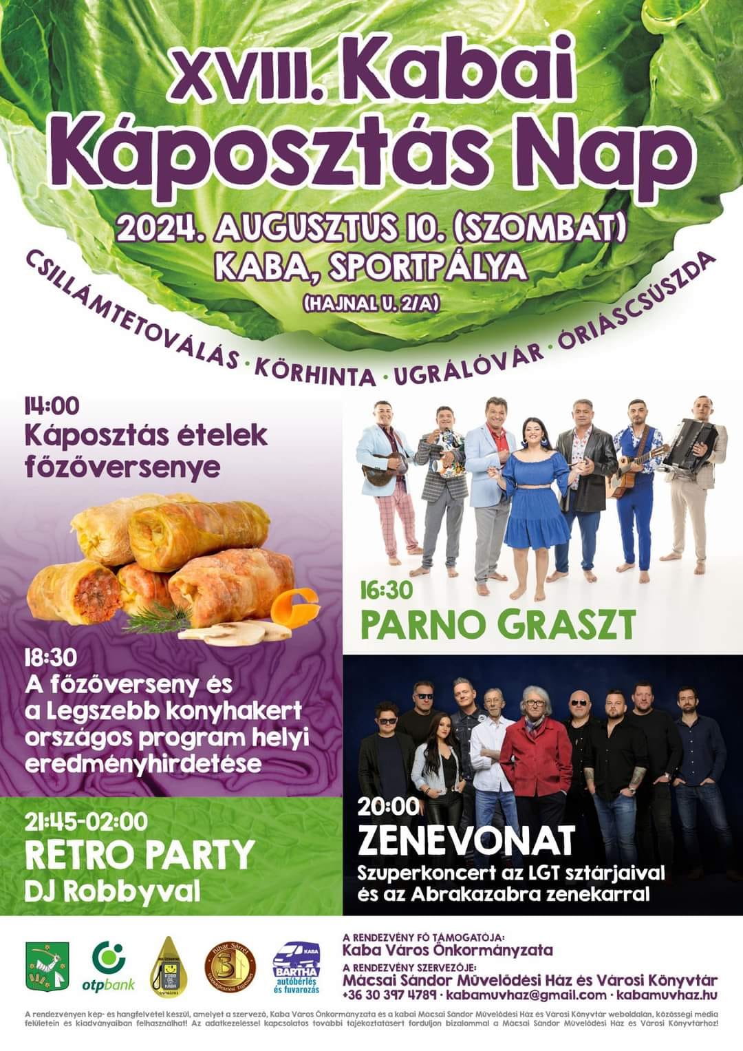 Kabai Káposztás Nap gazdag és színes programkínálattal és főzőversennyel 2024. augusztus 10-én. a kabai sportpályán.