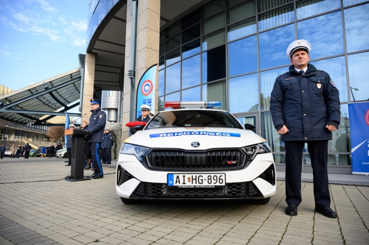 Az Országos Rendőr-főkapitányság (ORFK) nevében dr. Kuczik János Zoltán r. vezérőrnagy rendészeti országos rendőrfőkapitány-helyettes adta át a 25 járműből álló flottát a Teve utcai székház előtt december 12-én.