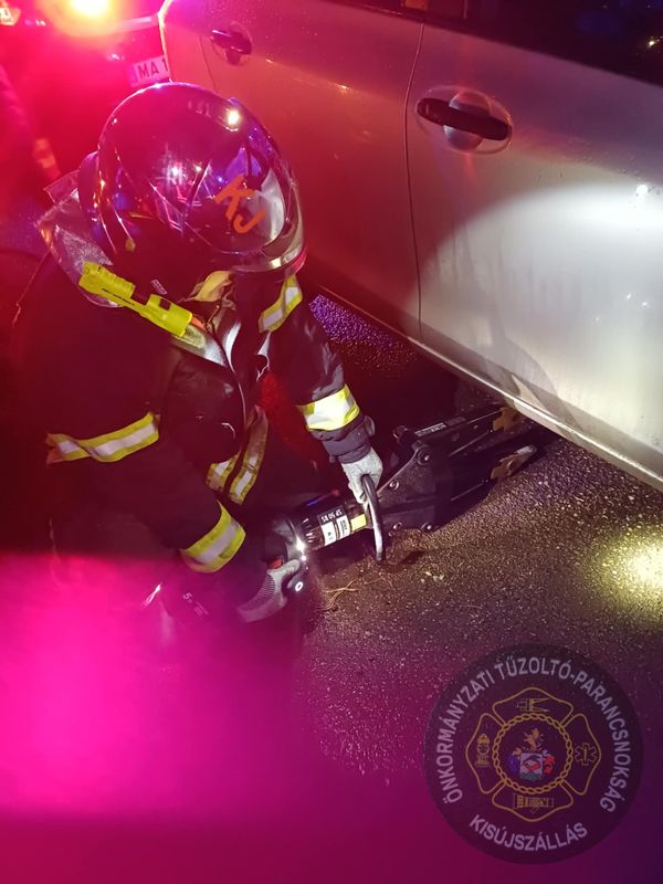 A kisúji tűzoltók hidraulikus feszítő berendezéssel megemelték az autót és kiszabadították az alatta lévő nőt.
