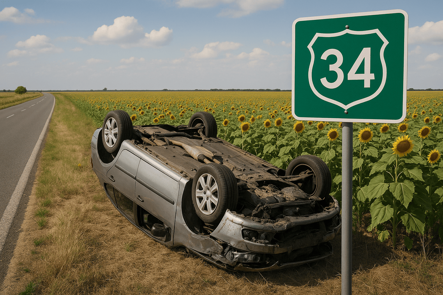 Lesodródott az úttestről és a napraforgótáblában, a tetejére borulva állt meg egy autó a 34-es főút 42-43-as kilométere között.