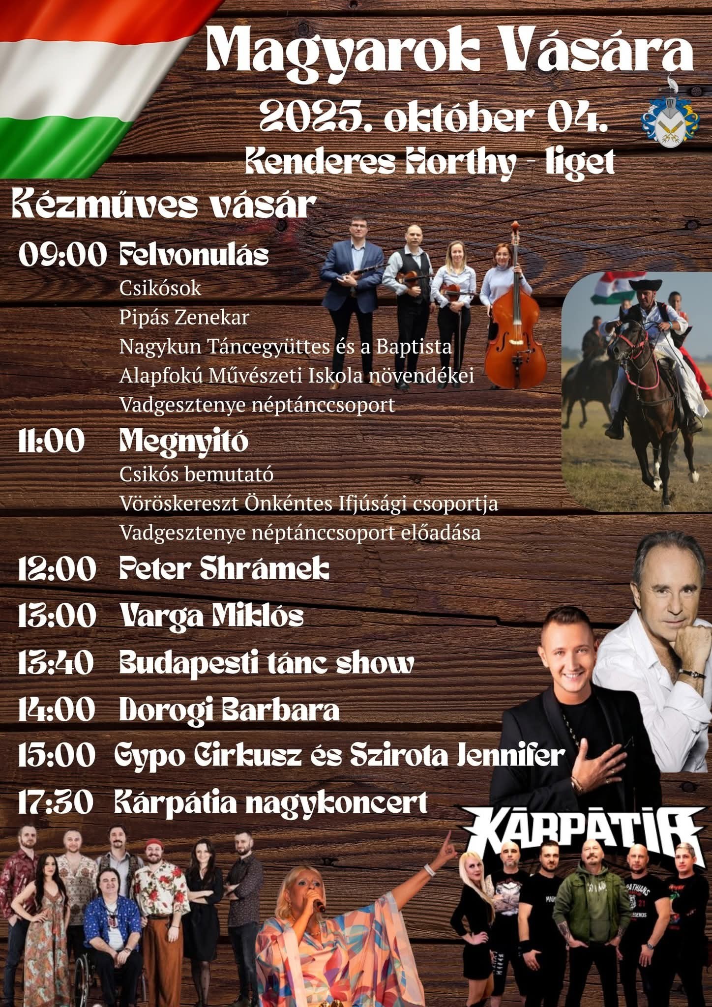 Karcagi hírekNagykunságProgramajánlóSzolnok megyei hírek Most szombaton: Újra Magyarok Vására Kenderesen – Fellép a Kárpátia! október 1, 2025 0 FacebookTwitterPinterestWhatsApp Most hétvégén szombaton a kenderesi Horthy-ligetben várja színes programokkal és kézműves vásárral a lakosokat a kenderesi Magyarok Vására. A rendezvény végén Kárpátia Nagykoncert lesz. Mutatjuk: Please leave this field empty Ne maradj le a legfontosabb hírekről! Iratkozz fel, és hetente összefoglaljuk neked a legfontosabb eseményeket – röviden, érthetően. Nem küldünk semmit feleslegese! Olvasd el privacy policy -nkat. Köszönjük, hogy feliratkoztál! Nézd meg az email fiókodban, hogy sikeres volt -e a feliratkozás. (Ne felejtsd el megnézni a Spam mappát sem) {{#message}}{{{message}}}{{/message}}{{^message}}Your submission failed. The server responded with {{status_text}} (code {{status_code}}). Please contact the developer of this form processor to improve this message. Learn More{{/message}}{{#message}}{{{message}}}{{/message}}{{^message}}It appears your submission was successful. Even though the server responded OK, it is possible the submission was not processed. Please contact the developer of this form processor to improve this message. Learn More{{/message}}Submitting… Share this: Click to share on Facebook (Opens in new window) Facebook Click to share on X (Opens in new window) X Szeptember 23- Kenderesi programajánlóDateszeptember 8, 2023In relation toKarcagi hírekKenderes: Térkővel törte be a kirakatot, hogy lophassonDatedecember 19, 2024In relation toNagykunságKenderes: A sikeres pályázatnak köszönhetően egy kisbusszal gyarapodott az önkormányzatDatejúnius 23, 2022In relation toKarcagi hírek